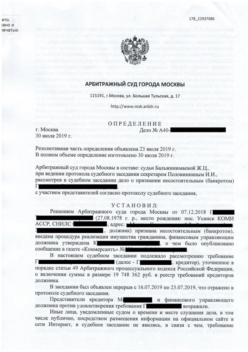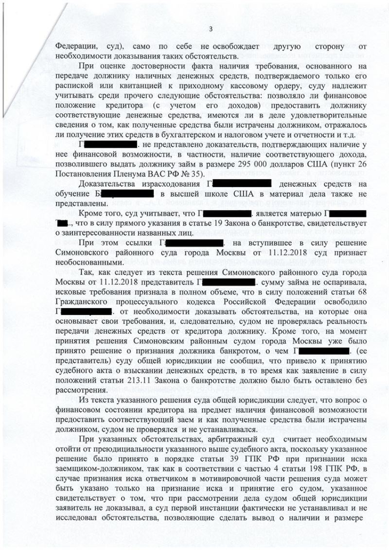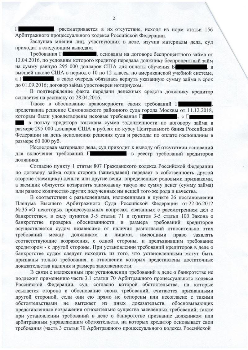 В деле о банкротстве гражданина было подано заявление кредитора о включении требований на основании договора займа, расписки и решения суда на сумму 295 000 долларов США, что на момент обращения составляло 19 748 362 рубля. При удовлетворении данных требований клиент понес бы существенные убытки.