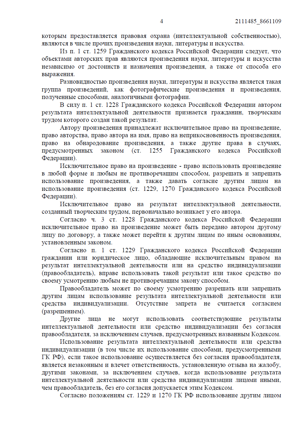 Ответчик не знал о неправомерности использования произведения, а после получения претензии принял меры по модерации контента. Также защита указывала, что размещение одного и того же произведения на двух страницах сайта охватывается единством намерений и должно рассматриваться как одно нарушение.